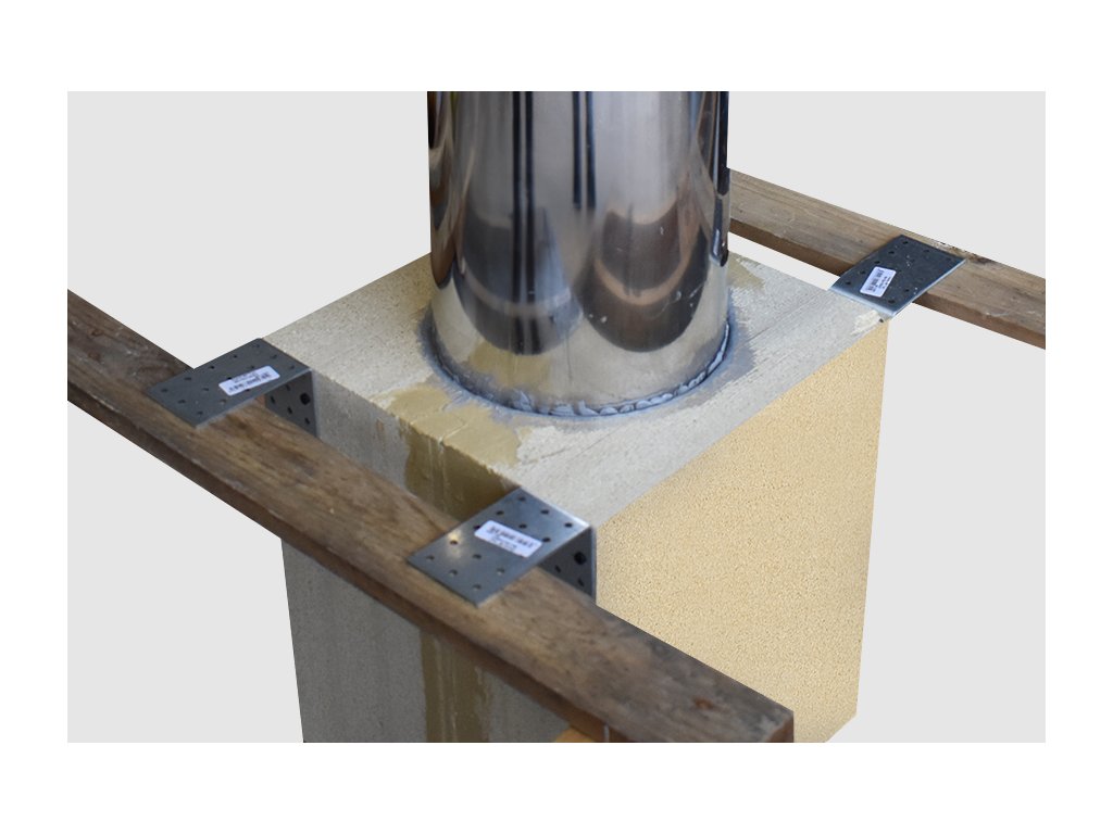 Průchodka se osadí do hořlavé části obvodové zdi domu, do izolační vrstvy stropu i střechy. Je vyrobena ze speciálního materiálu Vermikulit.