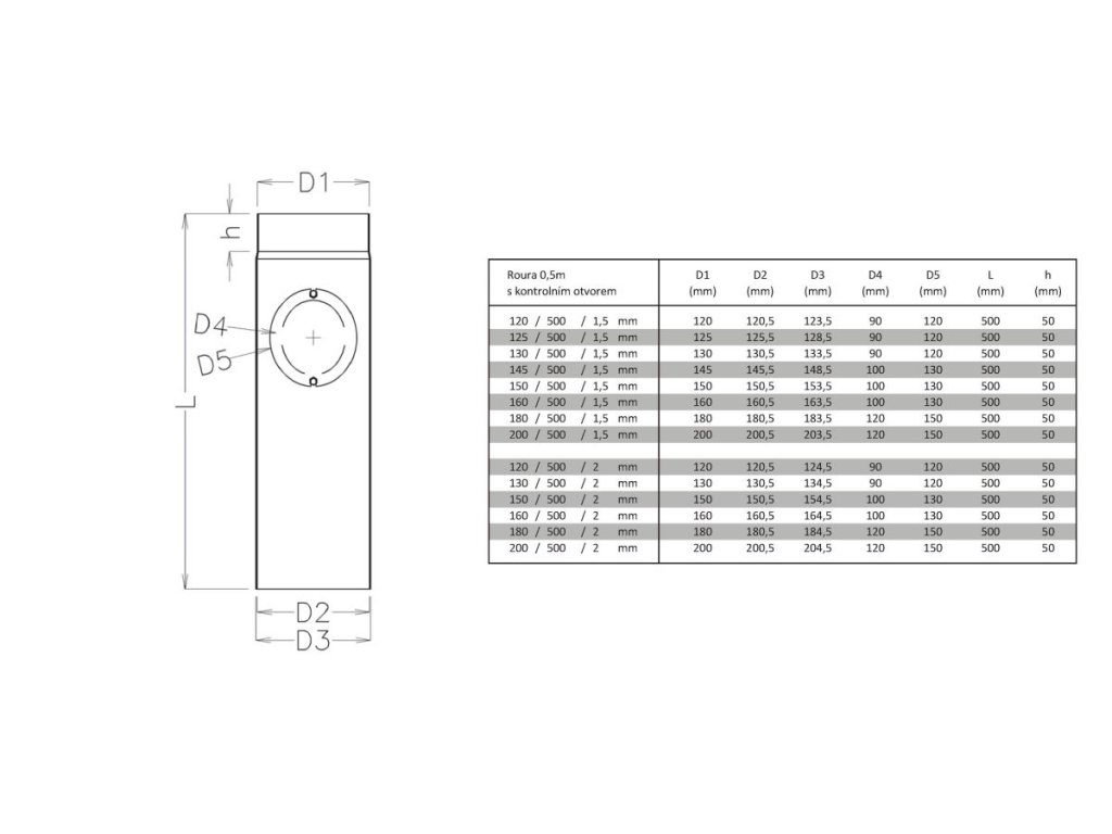 Trubka pro realizaci kouřovodu s čistícím otvorem, délka 500mm.