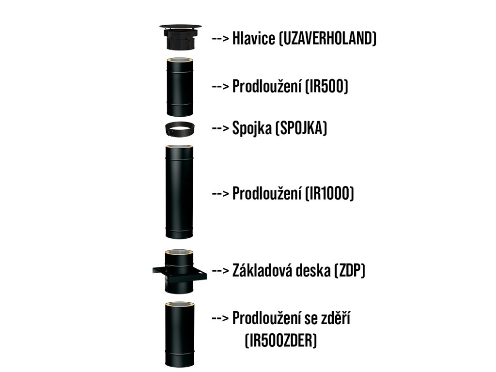 Pozor: sestava neobsahuje držáky, je třeba přiobjednat držáky a konzoly dle skutečného umístění komína.