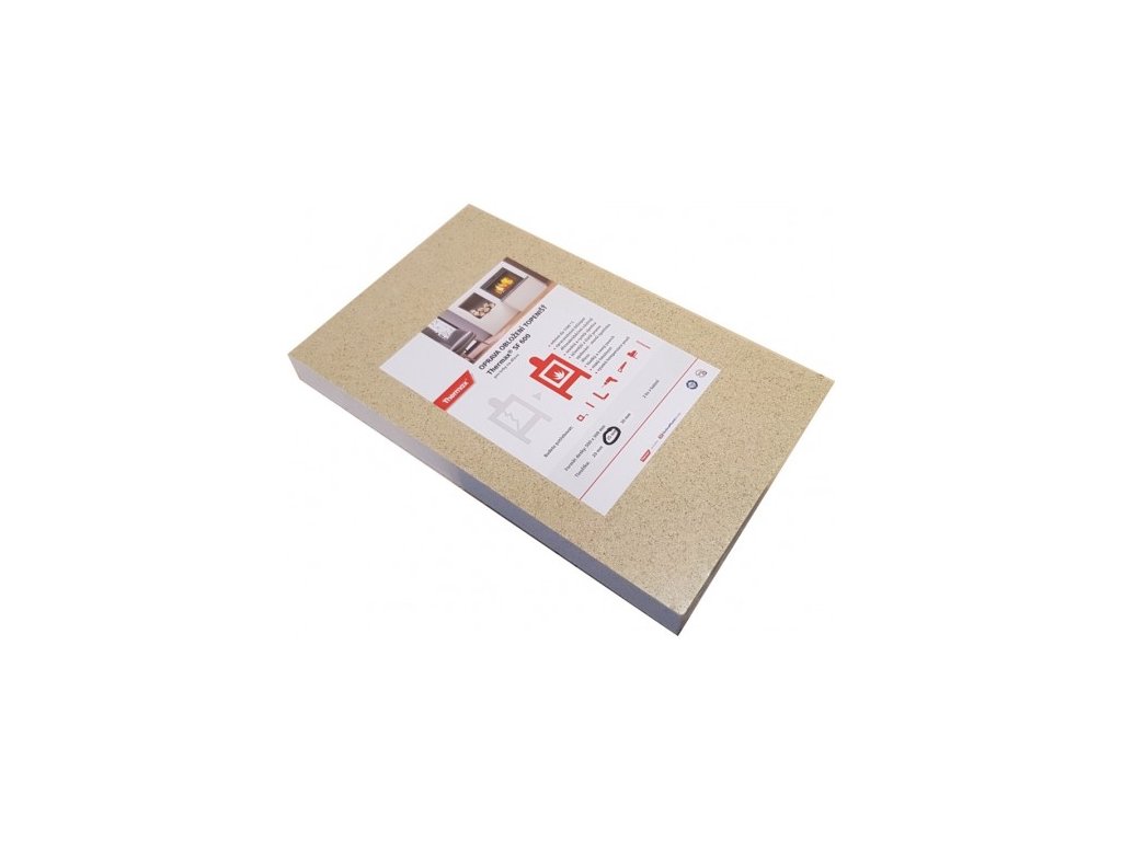Tyto desky jsou zatavené v tvrdé fólii společně s montážním postupem. Rozměr 500 × 300 mm stačí na opravu většiny topenišť. Konkrétní instalace potřebuje konkrétní řešení. Pokud desky instalujete jako vyzdívku topeniště, pamatujte na roztažnost a vynechejte mezi deskami vůli dle velikosti desek a topeniště 3 mm a více. Zabráníte tak prasknutí desky.