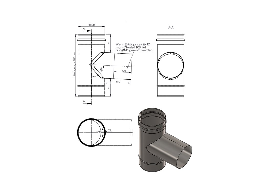 T klix slouží k připojení spotřebiče. Vodorovný výstup má shodný průměr se svislým.