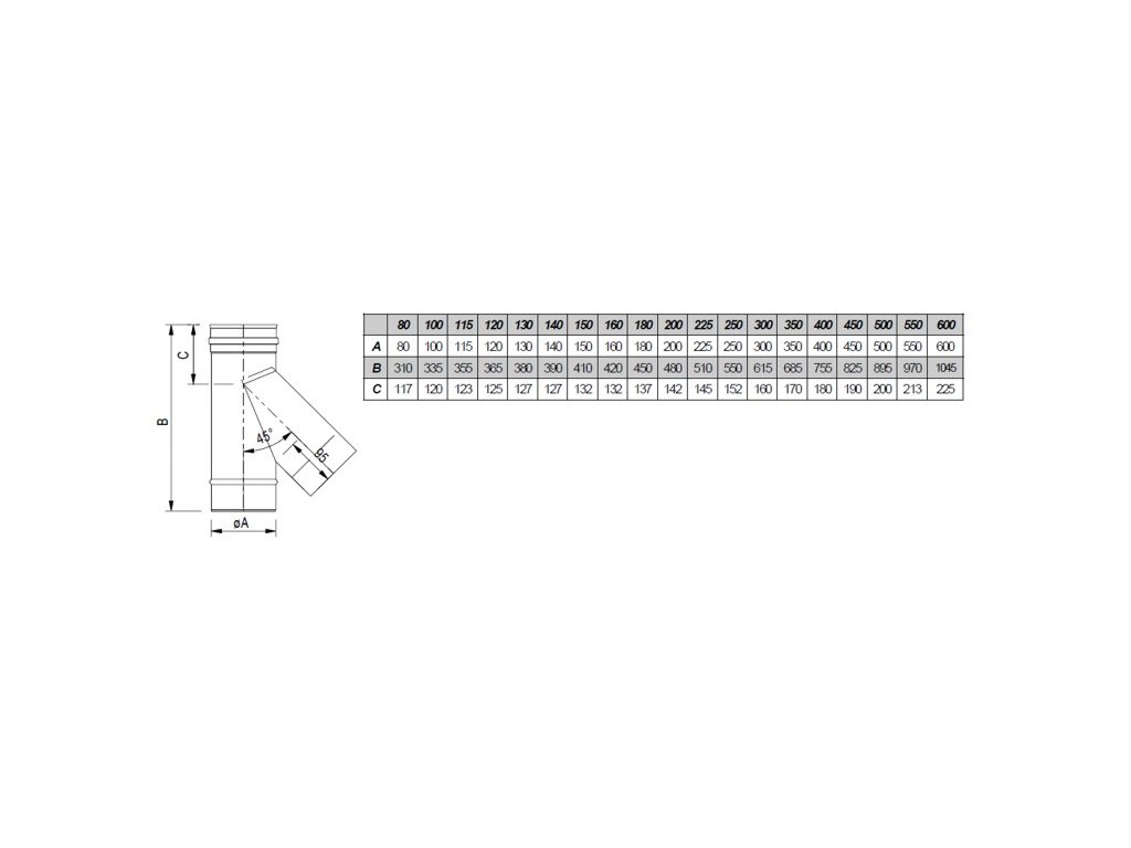 T kus slouží k připojení spotřebiče. Vodorovný výstup má shodný průměr se svislým.